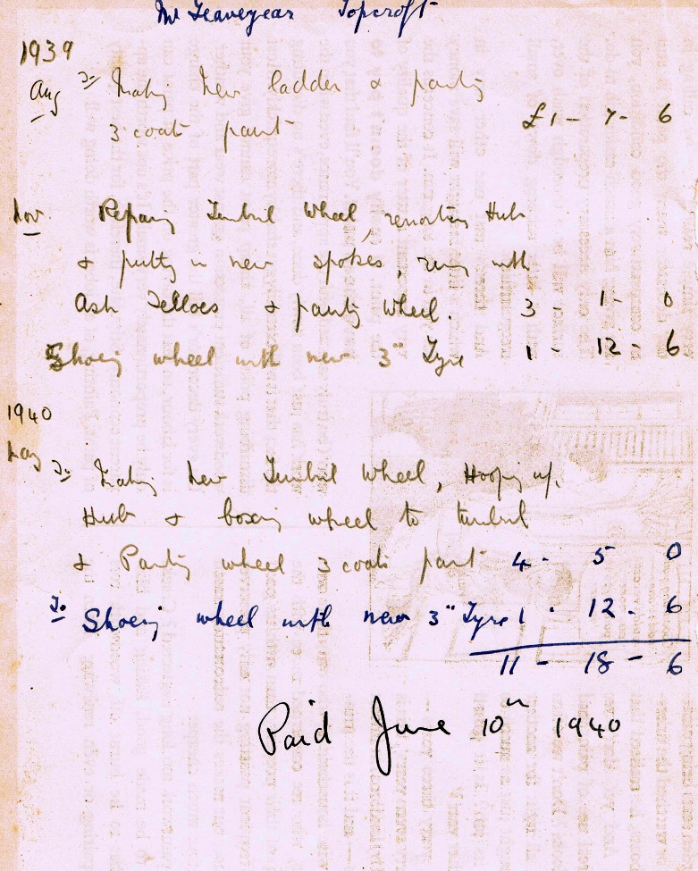 Interestingly it was written on the plain reverse of a piece of information on painting - whether this was from wartime (the accounts dated 1939 and 1940) is unknown but it appears to be stressing the importance of 'saving money' and 'economy'.